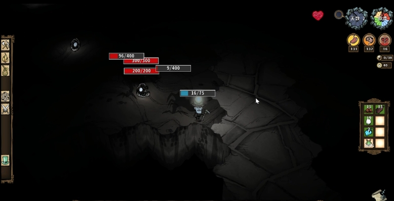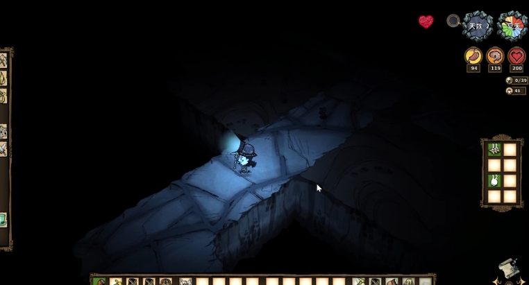 生存策略上,首要解决的是照明与精神值管理问题。没有黄宝石制作唤星者法杖或闪耀护符,玩家需更倚重营火、火把、矿工帽以及提灯等常规照明工具,并注意及时补充燃料。精神值维护则可通过持续装备高礼帽或采花制作花环来实现,烤熟的绿蘑菇也是前期稳定回复精神值的重要食物。确保基础生存稳固是应对外界威胁的前提,在探索与战斗时需更加谨慎,因为补充状态的手段相对有限。